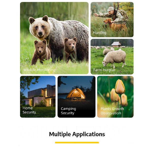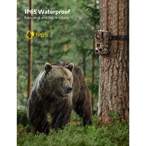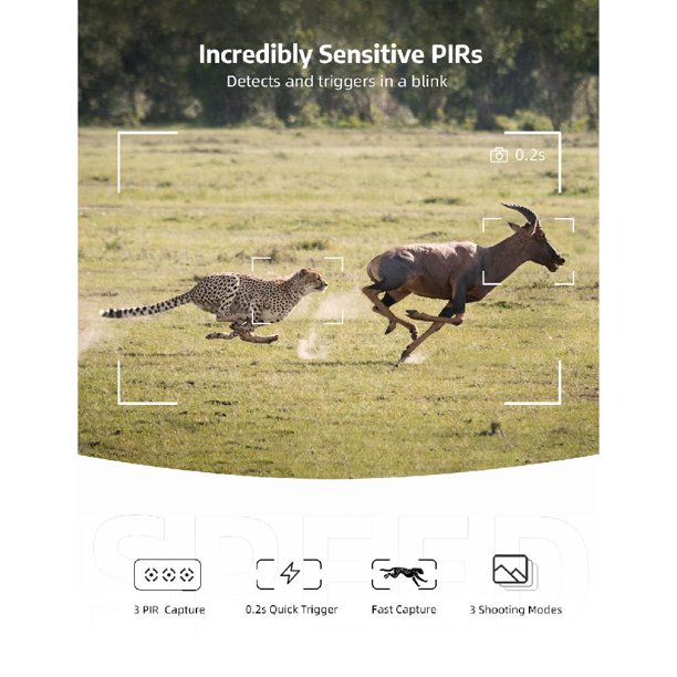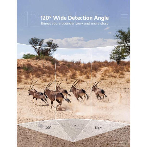 With 3 PIRs, this game camera provides 120° wide detecting range, which allows you to get excellent broader view. It will record any animal movements with wide angle lens even in rainy days.